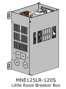 The Little Rosie E-Panel is an AC and DC enclosure offering over-current protection (OCP) and disconnects for AC IN, AC OUT, and to the battery bank.